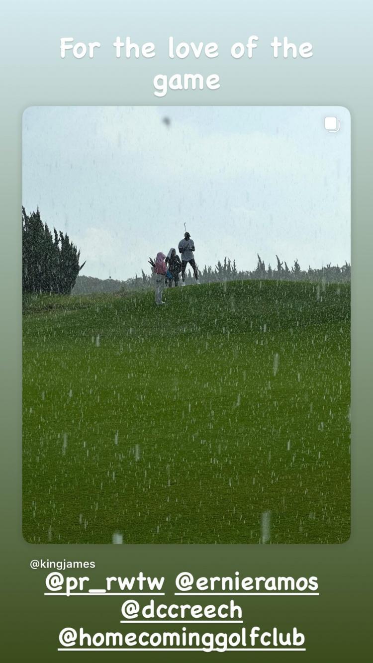 直播吧9月5日讯 今日,湖人前锋詹姆斯更新Instagram,晒出此前他在上海和朋友冒雨打高尔夫的视频和图片。你能忍受雨水️吗!!♂️♂️“”詹姆斯配文道。在Story上转发自己的帖子时,詹姆斯评论道:“出于对这项运动的热爱。”